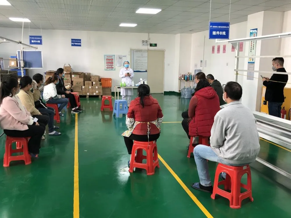 塘頭社康中心醫(yī)務人員在恩斯邁電子(深圳)有限公司培訓。