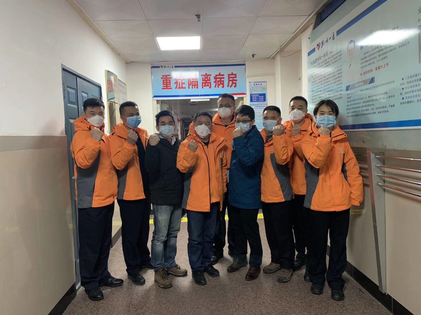 醫(yī)生團隊共有7個人,我也將他們送到重癥隔離病區(qū)門口。我不能進去,就和大家一起合了個影,這是我這一輩子都不能忘記的一次合影,我們每個人豎拳的手勢都那么有力,每個人的眼神都那么堅定!連最瘦弱的女醫(yī)生單雪也看起來充滿力量。