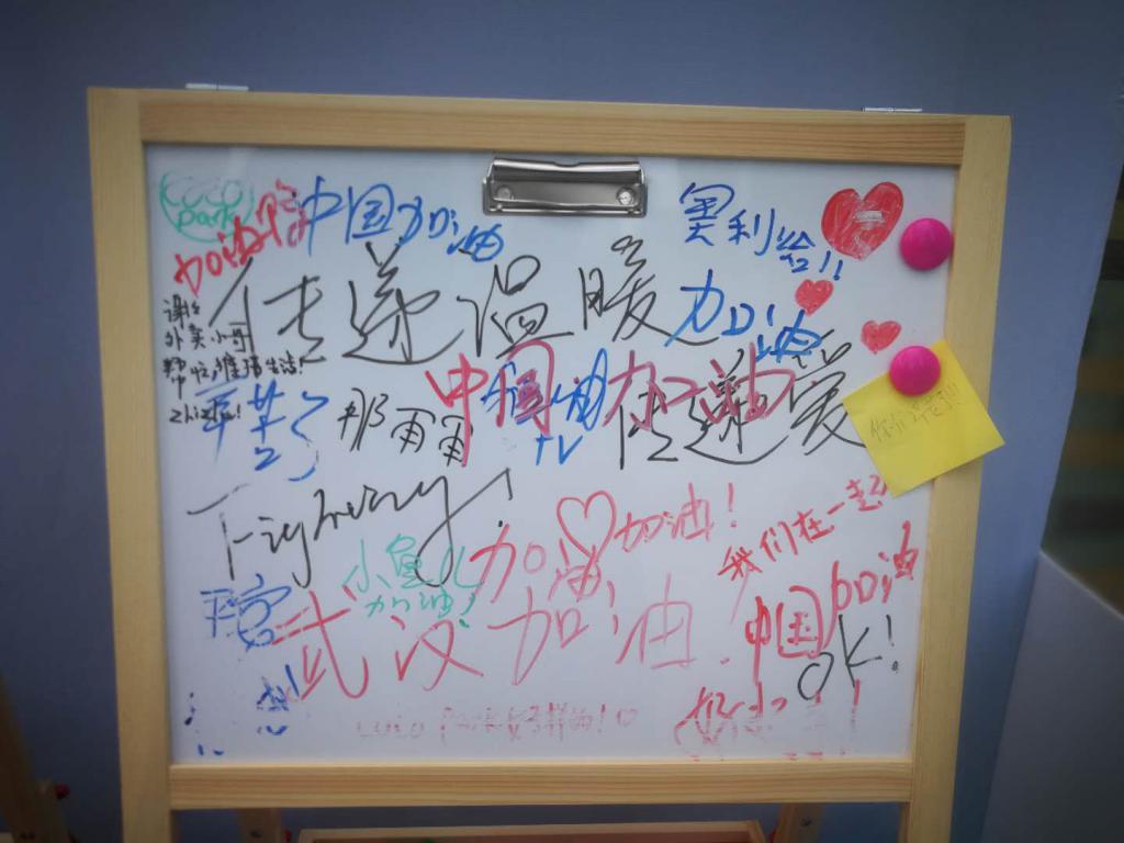 記者留意到,無人冰柜旁,一張碩大的告示牌上寫著"無人冰柜接力,接力溫暖接力愛",告示牌的下方,還特意標(biāo)注"醫(yī)護(hù)人員、警察同志、義工同志、環(huán)衛(wèi)工人、快遞小哥、外賣小哥,你們辛苦了"的字樣。告示牌前,還架著兩塊白板,上面寫滿了諸如"武漢加油""傳遞溫暖""一起看櫻花"等市民的真情告白。告示牌旁,擺放著二十幾箱晨光仙草涼粉,以及成箱的百歲山、農(nóng)夫山泉等品牌的礦泉水,冰柜里還有可口可樂以及一些涼茶飲料。柜體上,清晰地標(biāo)注了"免費(fèi)飲品,這里領(lǐng)取。"