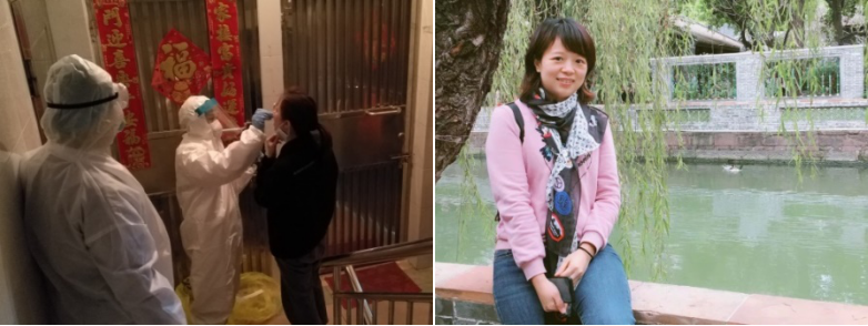 張家琪,新港社康中心全科醫(yī)生,2月10日是其早早選定的結(jié)婚日子,本該是穿上婚紗成為眾人矚目的新娘子,現(xiàn)實(shí)是一身隔離衣,作為社區(qū)疫情防控成員穿梭在大街小巷,腳起泡、衣服濕透是常有的事,隔天照常上班,小小的身體似乎有用不完的能量。疫情至今共核查近300人次,協(xié)助轉(zhuǎn)運(yùn)、協(xié)助核酸檢測(cè)共計(jì)100多人。