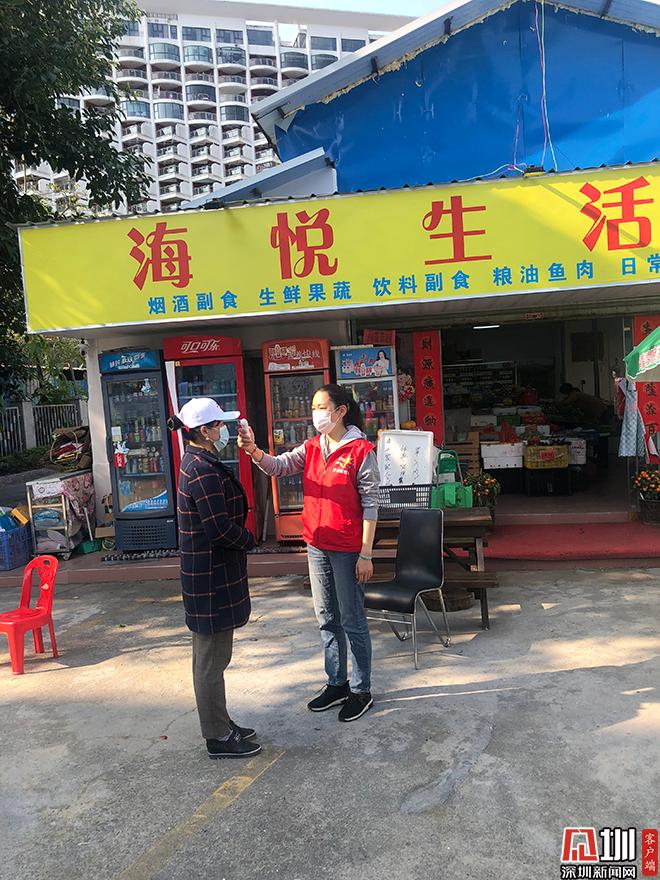 在賀佳的組織和號召下,梅沙街道首支抗疫宣傳志愿隊(duì)成立。20名志愿者每天在轄區(qū)5個(gè)防疫點(diǎn)開展防疫宣傳及勸導(dǎo)活動(dòng),督促居民按照疫情防控要求,不聚集,勤洗手,出門佩戴口罩,注意個(gè)人衛(wèi)生。在小梅沙村村口右邊,經(jīng)??煽吹劫R佳的身影,為出入小梅沙村居民測量體溫,提醒他們戴好口罩,呼吁盡量不出門。