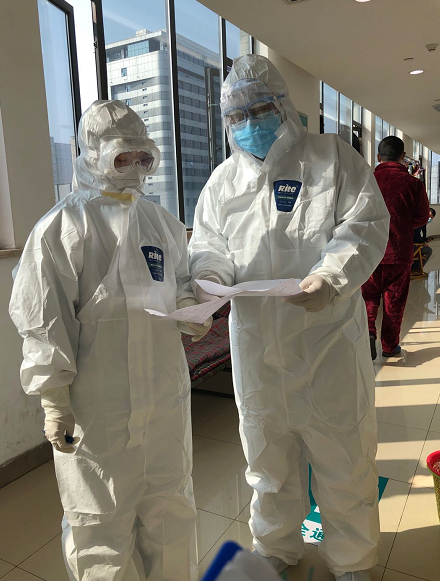 隨后春運(yùn)返鄉(xiāng)潮高峰很快到來,醫(yī)院發(fā)熱患者開始突增,收住病人持續(xù)增加,按照院領(lǐng)導(dǎo)指示,感染科立即開始調(diào)整床位,調(diào)整醫(yī)生班次,收治發(fā)熱患者,加強(qiáng)防護(hù)調(diào)配。黃主任全程參與,每天忙得昏天暗地。尤其是隨著縣中醫(yī)院隔離病區(qū)的展開,感染科主任和另外一位醫(yī)生被派到中醫(yī)院支援,人民醫(yī)院感染科所有的擔(dān)子基本上就全壓在他身上了。每天要下好幾次病房,查看所有患者的診治情況,了解病情變化、做流行病學(xué)調(diào)查、采集患者信息、上報疫情、參與會診......每天工作電話上百計,吃住都在科室,連醫(yī)院集中隔離的宿舍都很少回去,更別說顧及家人了。在連續(xù)奮戰(zhàn)了半個月后,他才第一次接到了八十多歲的老父親打來的電話,頓時鼻子一酸眼眶泛淚,原來父母在家里用的是每天洗了重復(fù)使用的口罩。