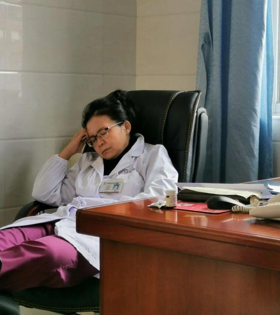 龍華區(qū)人民醫(yī)院感染性疾病科主任姜春梅負(fù)責(zé)發(fā)熱門診,是此次防控“戰(zhàn)役”龍醫(yī)的前線指揮官,今年49歲的她曾參加2003年非典、2009年甲流的防控工作。疫情期間,身體抱恙的她一直在打針吃藥,但仍在盡心安排防疫工作,工作間隙吃完藥的她,就這么靠在椅子上瞇一會。