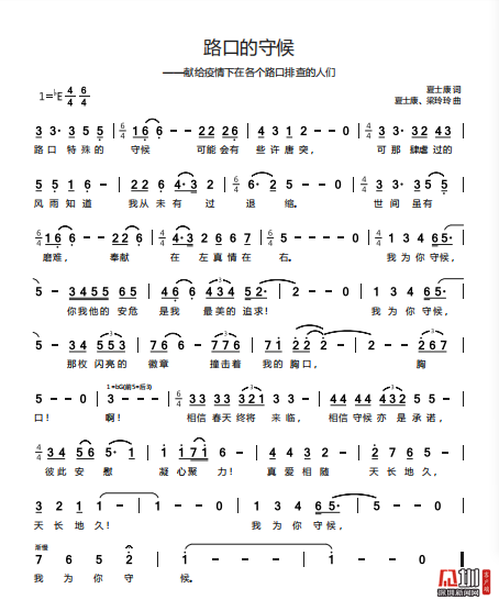 近日,龍崗區(qū)文化廣電旅游體育局職工夏士康、梁玲玲聯(lián)合北京自由音樂人劉珂銘創(chuàng)作的歌曲《路口的守候》正式推出?!奥房?,特殊的守候,可能會有些唐突,可那肆虐過的風雨知道,我從未有過退縮……”該歌曲以抗疫一線實錄為背景,深情表達了對以“路口戰(zhàn)士”為代表的抗疫戰(zhàn)士們的敬愛之情,及眾志成城、抗疫必勝的堅定信念。