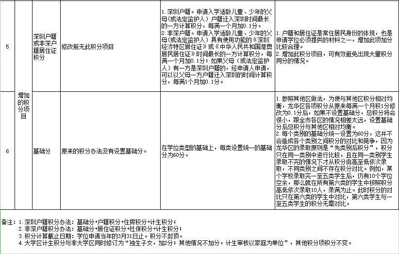 劃重點:政策內或全面二孩擬不再加分,獨生子女加2分;深圳戶籍自購商品房產擬改為以房產購買日期計算積分;非深戶籍擬按照養(yǎng)老保險和醫(yī)療保險兩種險種同時繳納的時間計算積分;新增深圳戶籍或非深戶籍居住證積分;新增基礎分60分。