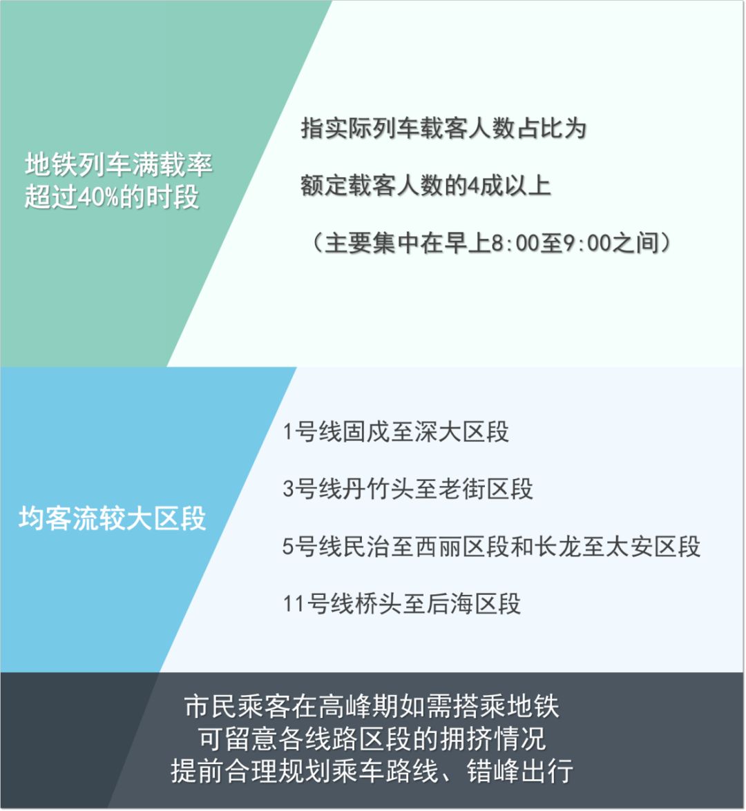 因此,深圳地鐵也建議乘客可盡量與高峰期錯(cuò)開15分鐘出行,以避免人多聚集,或因人多排隊(duì)進(jìn)站而耽誤時(shí)間。
