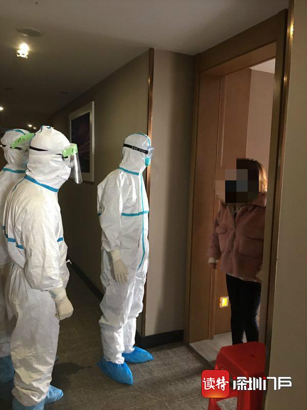 醫(yī)療隊(duì)員在留置觀察點(diǎn)對(duì)留觀人員進(jìn)行回訪。 深圳醫(yī)療隊(duì)供圖