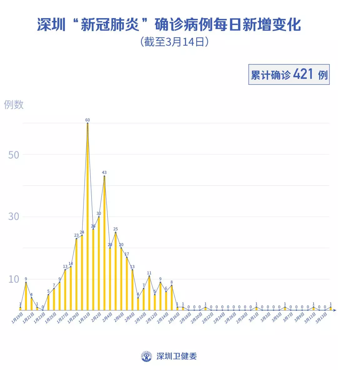 截至3月14日24時(shí),深圳累計(jì)報(bào)告“新冠肺炎”確診病例421例。3月14日當(dāng)天新增1例,出院3例。