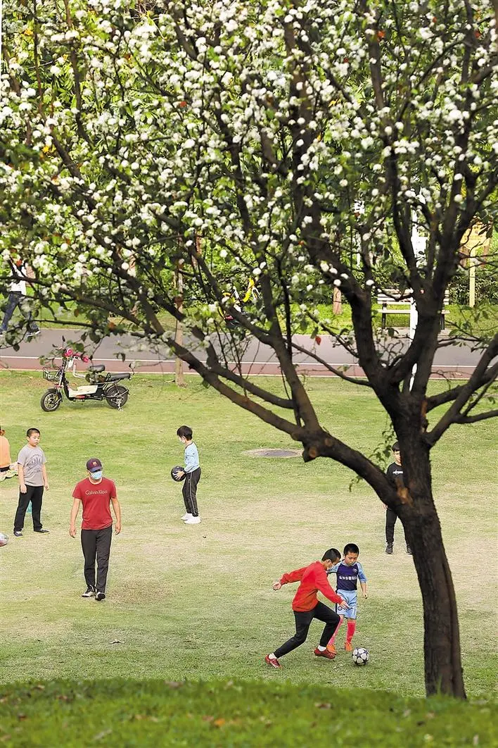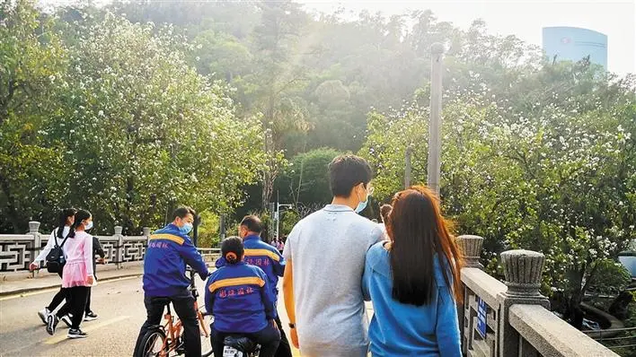市民們紛紛拿起手上的長槍短炮,以深圳藍為背景,記錄下春日美景。