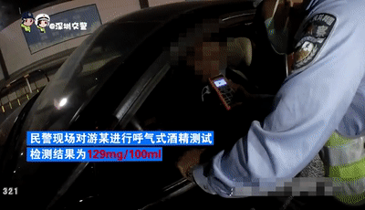 2020年3月17日23時(shí)20分許,深圳交警在東縱路龍坪路口路段開(kāi)展獵虎行動(dòng),行動(dòng)中將涉嫌醉酒駕駛的粵B****0號(hào)牌小汽車駕駛員游某查獲。
