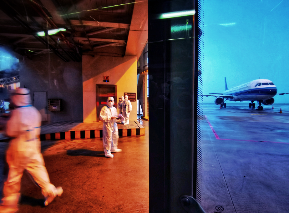 將近25個小時的路途,最困難的就是穿著防護(hù)服,要做到全程不吃不喝不上廁所。但是,為了自身和他人的健康,我只能克服。在轉(zhuǎn)乘的5個小時里,才喝了一些水,上了趟廁所。即便是上廁所時,我也是戴好一次性手套,用紙巾擦拭所有摸過的地方。