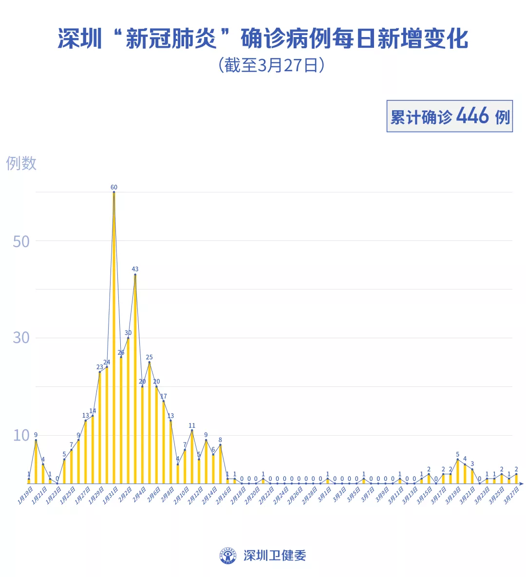 截至3月27日24時,深圳累計報告“新冠肺炎”病例446例。3月27日當(dāng)天新增2例。