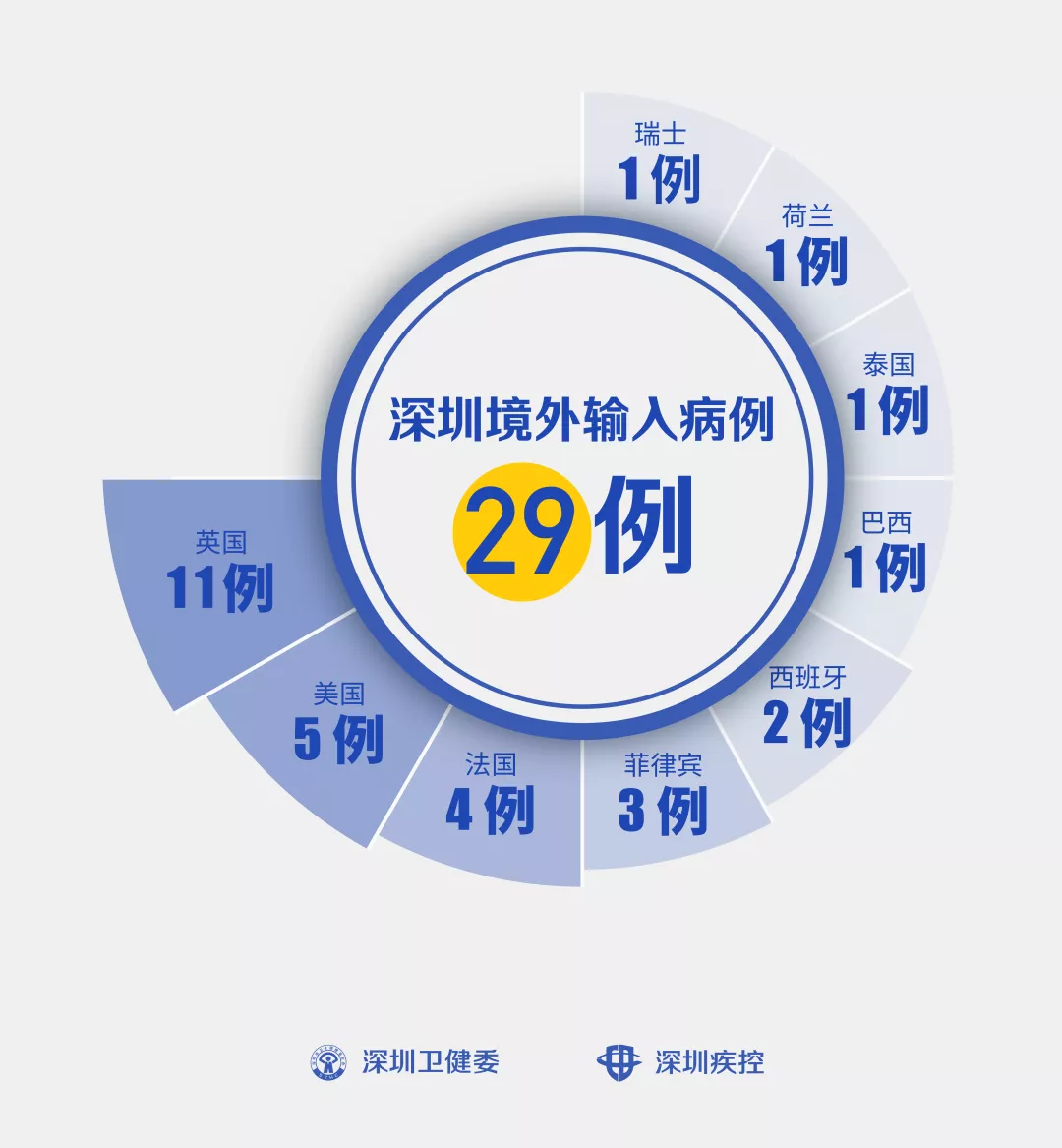 3月27日,深圳確診2例境外輸入“新冠肺炎”新病例,累計達(dá)29例。 病例28 男,32歲,中國籍,由巴西返回。3月21日從巴西圣保羅乘坐TK194航班飛往土耳其伊斯坦布爾,23日從土耳其伊斯坦布爾乘坐TK070航班飛往中國香港,24日從香港乘坐9C8922航班飛往上海,經(jīng)浦東機場入境,入境時體溫正常。25日從上海乘坐航班CA1893抵達(dá)深圳后,由專車送往隔離觀察。26日患者自感發(fā)熱,水銀溫度計自測體溫37.7℃,隨后由120救護(hù)車送醫(yī),當(dāng)天新冠病毒核酸初篩陽性,深圳市疾控中心復(fù)核亦為陽性。27日經(jīng)專家會診,臨床診斷為新冠病毒肺炎。 目前患者已轉(zhuǎn)到深圳市第三人民醫(yī)院隔離治療。初步判定,中國內(nèi)地密接者3名,已隔離觀察。 病例29 女,51歲,美國籍,由美國返回深圳工作。3月21日從美國紐約乘坐BR0031航班飛往中國臺北,22日從臺北乘坐CA196航班飛往上海,經(jīng)浦東機場入境,入境體溫36.4℃。23日從上海乘坐CA1893航班抵達(dá)深圳后,由專車送往隔離觀察。26日新冠病毒核酸初篩陽性,當(dāng)天深圳市疾控中心復(fù)核亦為陽性。27日經(jīng)專家會診,臨床診斷為新冠病毒肺炎。 目前患者已轉(zhuǎn)到深圳市第三人民醫(yī)院隔離治療。初步判定,中國內(nèi)地密接者1名,已隔離觀察。 截至3月27日24時,深圳累計報告“新冠肺炎”病例446例。3月27日當(dāng)天新增2例。 累計報告確診病例中,男性217例、女性229例。 目前,死亡3例,累計出院416例。 27例確診病例均在深圳市第三人民醫(yī)院隔離治療。 391名密切接觸者正在接受醫(yī)學(xué)觀察。 資料來源:深圳市疾控中心、深圳市衛(wèi)健委、廣東省衛(wèi)健委