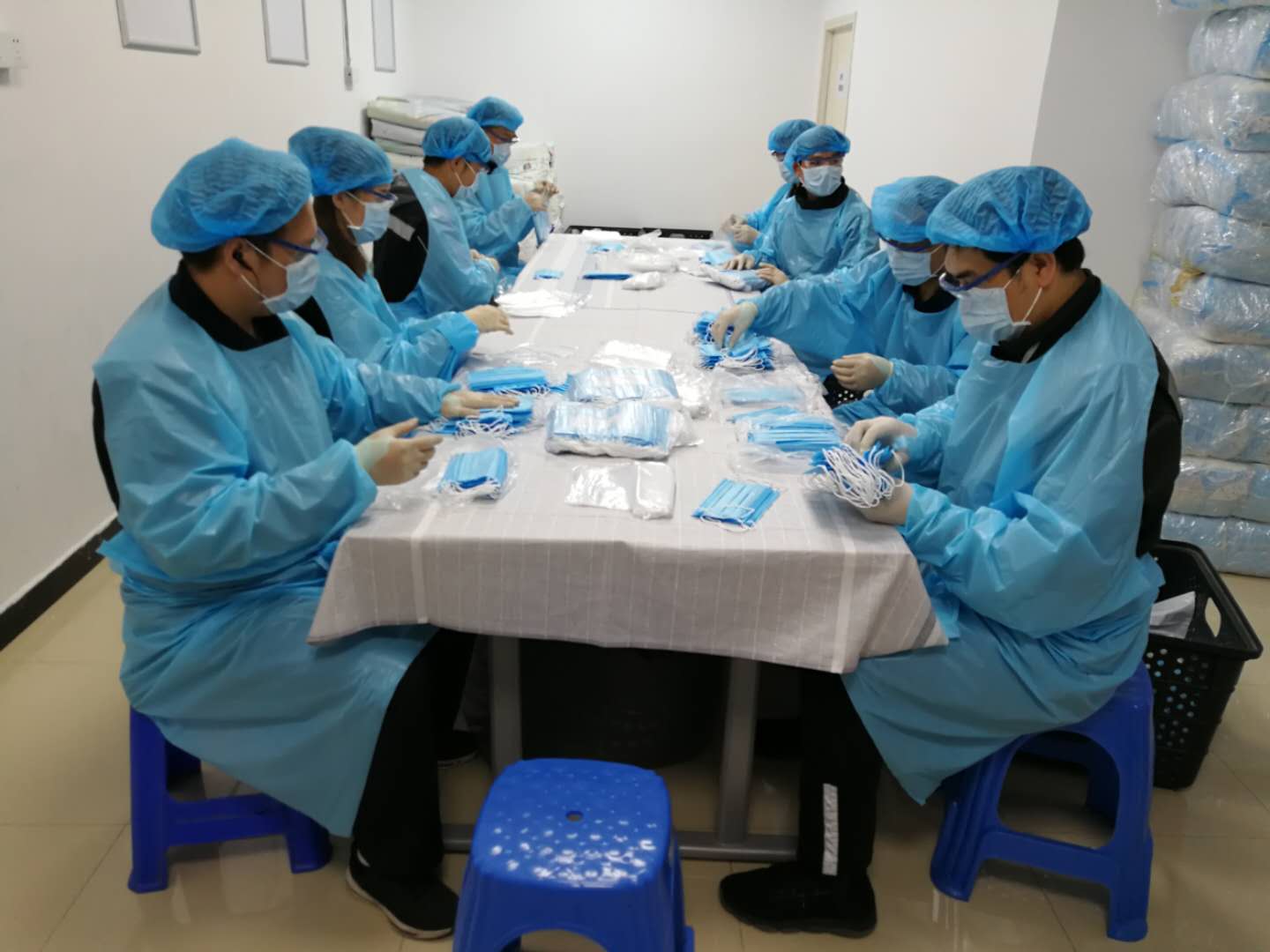 工作人員打包口罩