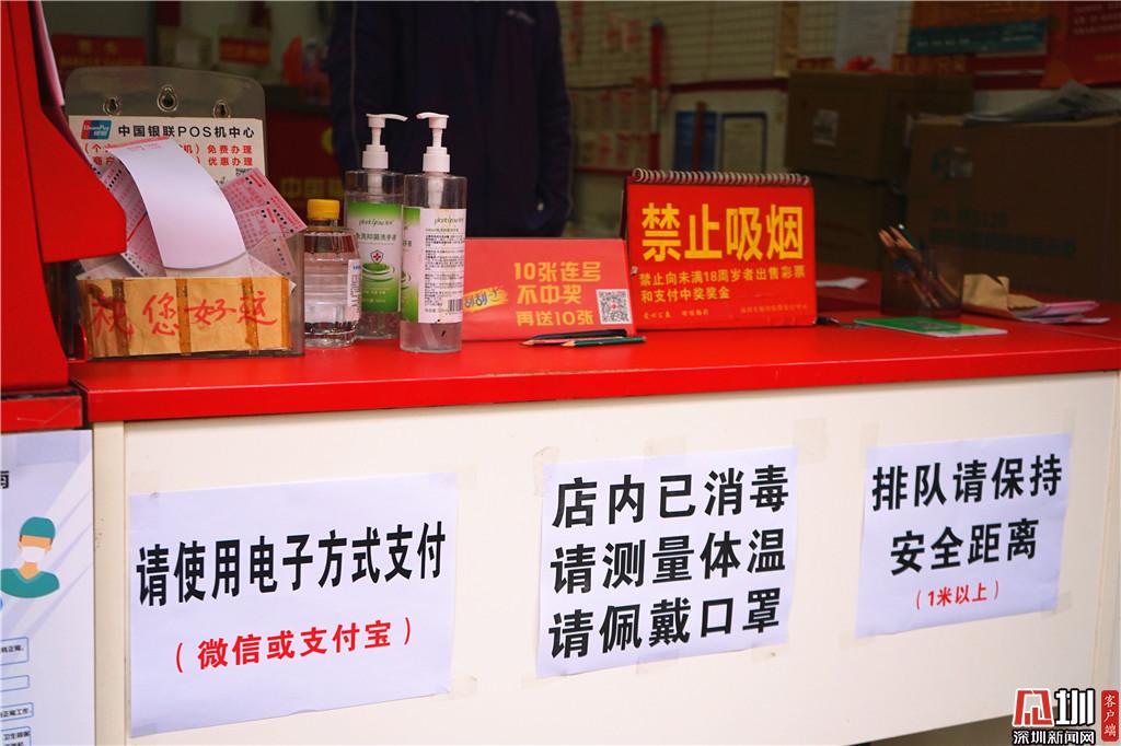 另一家在福田區(qū)華發(fā)北路,店號為83021044的投注站點(diǎn),門口已經(jīng)被店員用桌子堵上,并貼上了相關(guān)防疫告示,“之前深圳福彩中心的工作人員來檢查過,后續(xù)也會給我們配送一些防護(hù)物資?!庇浾咴诖擞^察了30分鐘,期間僅有兩位彩民前來,共購買了8元彩票。店主馬先生向記者介紹,“以前大家都會來店里邊坐,主要買的是20分鐘開兩次的‘快樂彩’,現(xiàn)在都不給進(jìn)來,那個彩票也暫停銷售了?!?nbsp;
