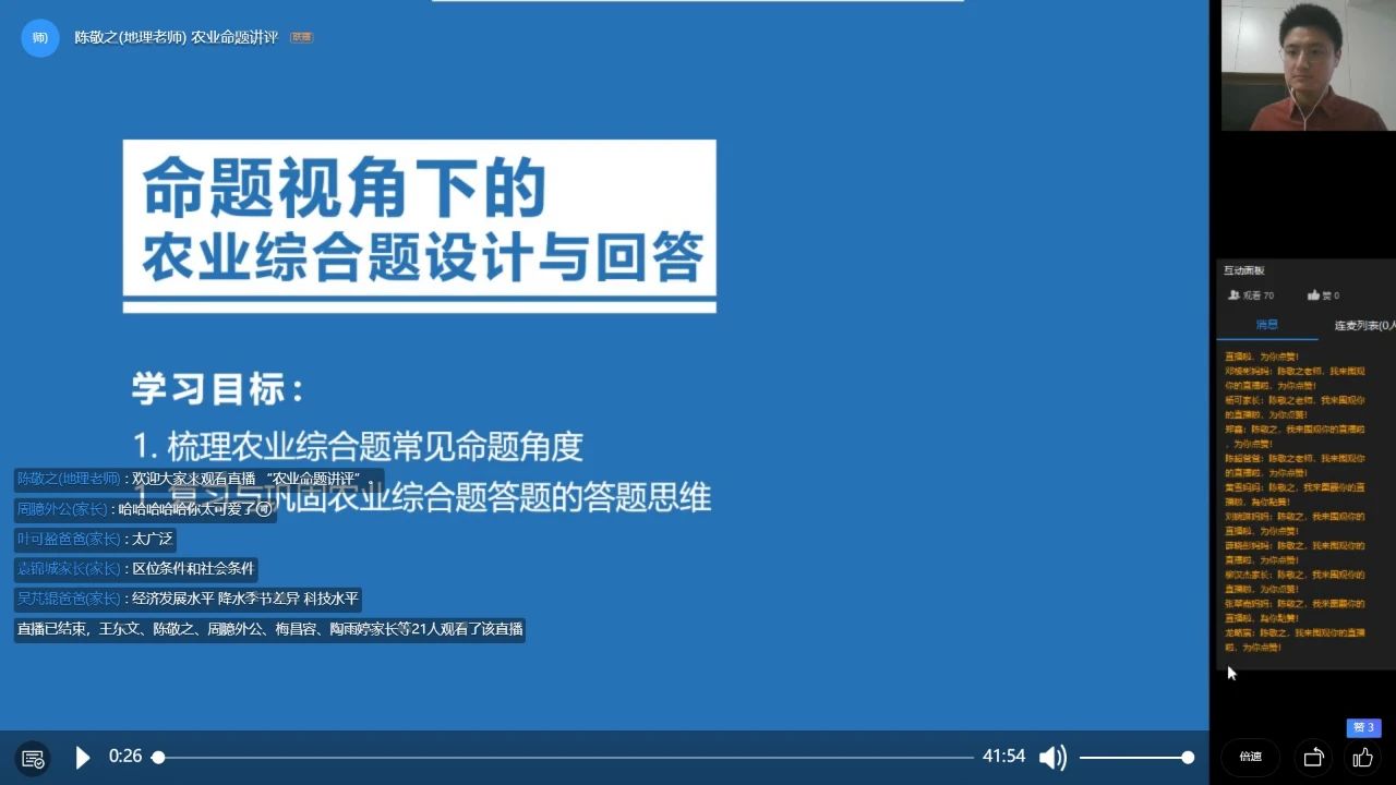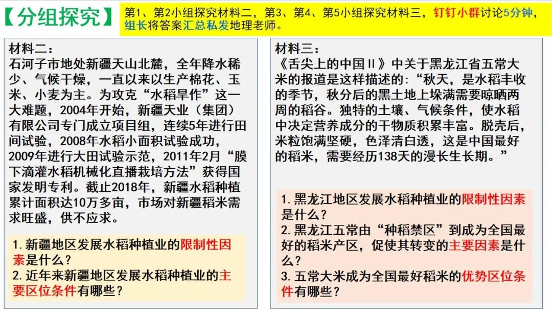 地理科李金鳳老師在《農(nóng)業(yè)區(qū)位因素及其變化》一課中組織了線上分組討論,并對小組討論的結(jié)果逐一點評,及時反饋。