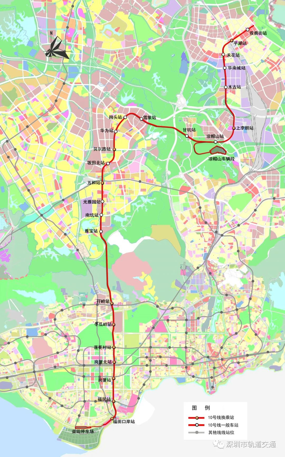 地鐵10號線屬于深圳市軌道交通三期工程項目,南連與香港毗鄰的福田口岸站,北接龍崗區(qū)的平湖樞紐。線路途徑福田口岸、福民、崗廈、崗廈北、蓮花村、冬瓜嶺、孖嶺、雅寶、南坑、光雅園、五和、坂田北、貝爾路、華為、崗頭、雪象、甘坑、涼帽山、上李朗、木古、華南城、禾花、平湖、雙擁街24個站點,線路全長約29公里,跨福田、龍華、龍崗區(qū)。截至目前,全線23個車站(除崗廈北站)已封頂。其中,影響全線開通初期運營的附屬結(jié)構(gòu)出入口、風(fēng)亭等需開挖基坑總數(shù)共計118個,目前已完工116個。