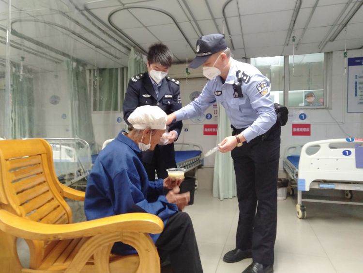 3月30日凌晨1時(shí)許,在醫(yī)務(wù)人員及民警的悉心照料下,老人漸漸蘇醒過來。石圍社區(qū)警長常軍給老人帶來了口罩和熱粥,一邊照顧老人喝粥,一邊輕聲地詢間老人的姓名、住址和親人信息等。但老人語言含糊不清、答非所問,說不清自己姓甚名誰,從哪里來、要到那里去,也無任何通訊工具。無奈,常警長只好安慰老人好好休息,并安排警力協(xié)同醫(yī)院值守警力對(duì)老人進(jìn)行輪流照看,防止其再次走失發(fā)生意外。