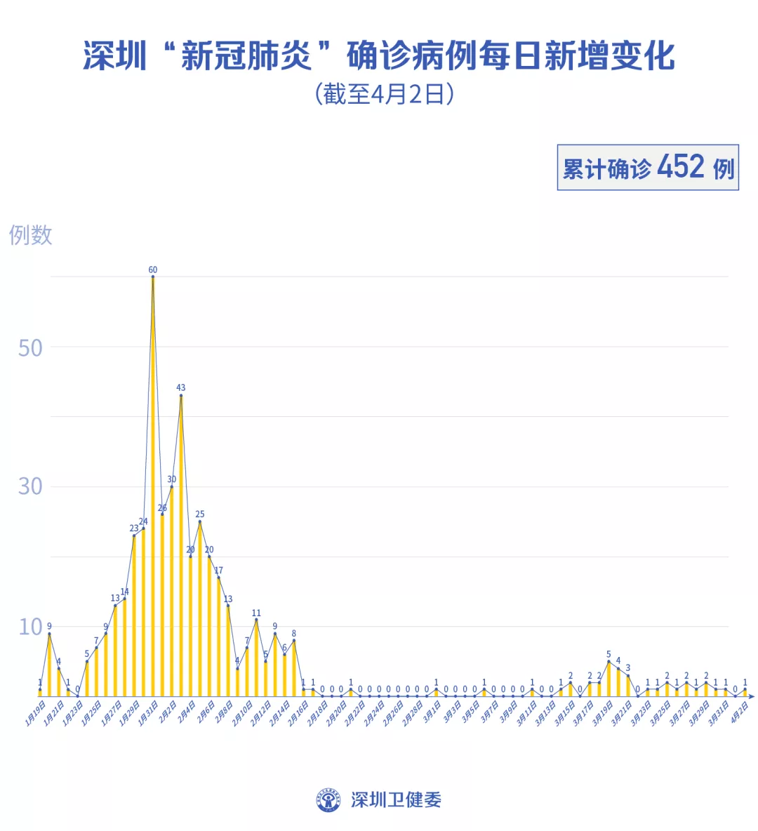 截至4月2日24時,深圳累計報告新冠肺炎病例452例。4月2日當(dāng)天新增1例境外輸入病例。