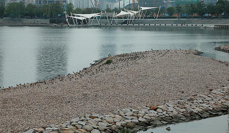 記者在采訪中了解到,2017年初,深圳觀鳥人士發(fā)現(xiàn)人才公園建設(shè)接近尾聲,人工島嶼種植了密集的植物。深圳市觀鳥協(xié)會隨即向人才公園建設(shè)主管部門提出《人才公園鳥類棲息地改善建議》。相關(guān)政府部門在征詢了廣東內(nèi)伶仃福田國家級自然保護區(qū)管理局、市野生動植物保護管理處、南山區(qū)城管局和深圳市觀鳥協(xié)會的意見和建議后,就協(xié)調(diào)處理人才公園水鳥棲息地等問題達成了一致意見,決定在適當(dāng)位置增加浮灘,增加水鳥停留棲息的空間。整改后的人工碎石灘,很快便吸引了大量的鸻鷸類候鳥前來停棲。"這個人工石灘的距離適中,既方便人類觀察,又不至于讓鳥兒感覺受到威脅,這么多年來,人與候鳥之間一直相安無事,鳥兒也已經(jīng)習(xí)慣了這里的環(huán)境,所以它們才能在人類的眼皮底下安心地打盹兒。""PT"向記者介紹說。