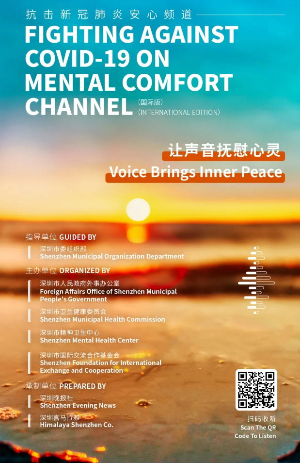 在疫情面前,每一份信念都意義重大,每一個(gè)希望都影響深遠(yuǎn)。4月11日,抗擊新冠肺炎安心頻道(國際版)在喜馬拉雅 APP正式上線。該欄目在深圳市委組織部的指導(dǎo)下,由深圳市外辦攜手深圳市衛(wèi)健委、深圳市精神衛(wèi)生中心、深圳市國際交流合作基金會(huì)聯(lián)合出品,由深圳晚報(bào)和深圳喜馬拉雅共同承制。據(jù)悉,抗擊新冠肺炎安心頻道(國際版)是深圳市外辦首次聯(lián)合多部門協(xié)作,共同出品的全英文音頻欄目,也是繼"抗擊新型肺炎安心手冊音頻版"推出以來的又一大創(chuàng)新。該欄目的推出體現(xiàn)了深圳對中外居民的人文關(guān)懷,也展現(xiàn)了深圳作為國際化城市的溫暖大愛。