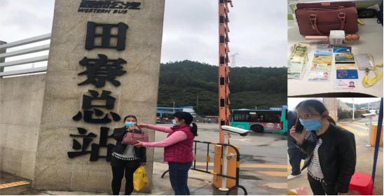 當(dāng)天下午,邱女士乘坐 M455線路公交車前往光明區(qū)文化館,途中她順手把包放在座位上,到站時(shí)下車匆忙居然忘了拿,等反應(yīng)過來,車早已開遠(yuǎn),車牌號(hào)也看不清了,這可把她急壞了。冷靜下來后,邱女士趕緊致電西部公汽客服求助。客服人員了解情況后,將其電話轉(zhuǎn)接到該公交車所在的田寮車隊(duì)。班車隊(duì)管理人員根據(jù)邱女士的描述,很快鎖定她乘坐的是由董健康師傅駕駛的牌號(hào)為粵 B40553D的車,便迅速讓 GPS監(jiān)控員關(guān)注車輛情況,聯(lián)絡(luò)司機(jī)董師傅留意車上是否有符合失主描述的手提包,確認(rèn)了包仍在座位上以后,及時(shí)反饋失主邱女士,安撫其焦慮情緒。