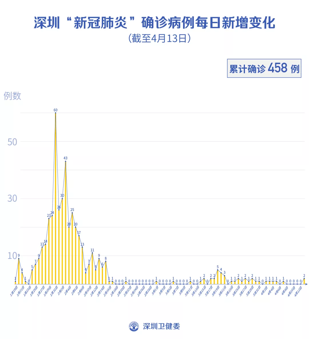 截至4月13日24時(shí),深圳累計(jì)報(bào)告新冠肺炎病例458例。4月13日當(dāng)天新增2例境外輸入病例,新增無(wú)癥狀感染者1例,出院1例。