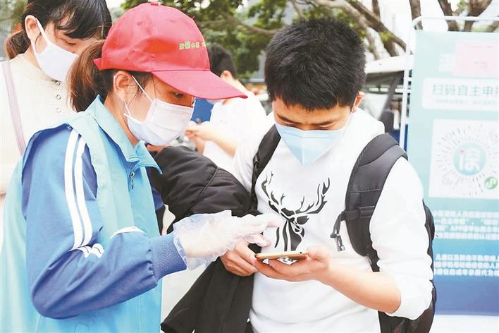 章閣社區(qū)工作人員指導(dǎo)居民申報(bào)個(gè)人信息。