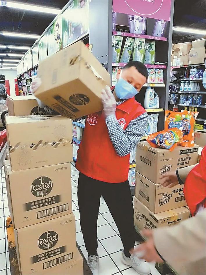 余昌寶抗疫期間在商場(chǎng)超市做義工。
