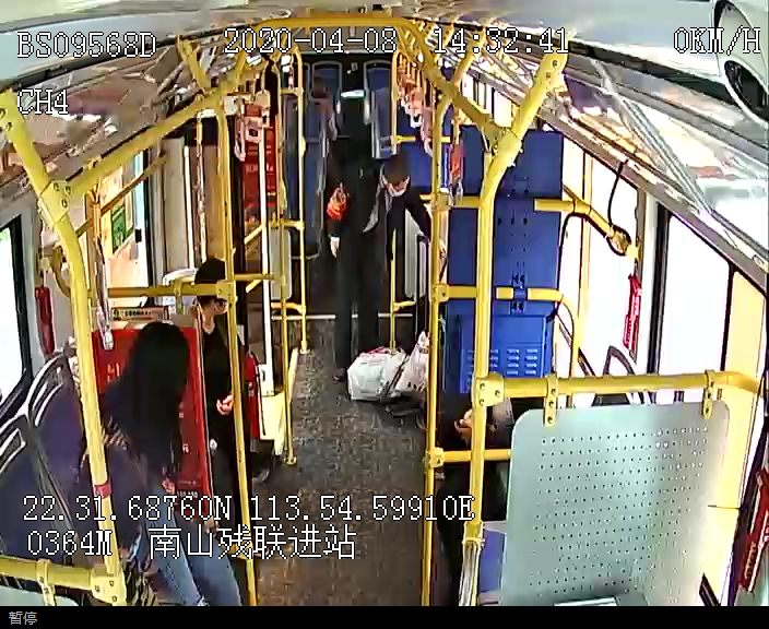 4月8日下午,67歲的李女士在廣中醫(yī)深圳醫(yī)院站乘坐深圳巴士集團(tuán)四分公司前海車隊(duì)M364線粵B09568D車前往南山村西站。在當(dāng)天下午14時31分,當(dāng)班駕駛員曹利平駕駛著車輛進(jìn)入南山殘聯(lián)站時,聽到有乘客在車上的呼喊聲,發(fā)現(xiàn)坐在后門附近座位上的李女士陷入暈厥,就連隨身的買菜的手拉車車滑倒至后門踏板處造成的聲響和旁邊乘客的呼喊提醒聲也沒有聽見。由于擔(dān)心老人家的身體狀況,曹師傅走到李女士身邊多次呼喚,直到她清醒過來。