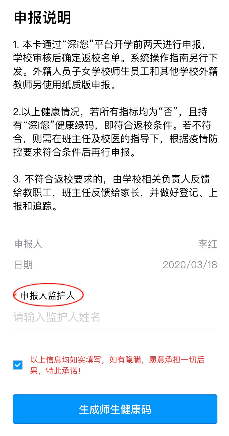 請(qǐng)根據(jù)實(shí)際情況完成健康信息申報(bào),包括選擇家庭住址、申報(bào)健康情況、填寫監(jiān)護(hù)人姓名。