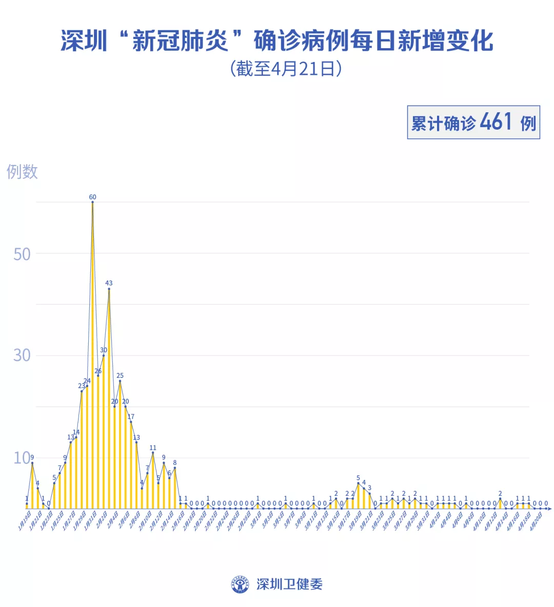 ??截至4月21日24時,深圳累計報告新冠肺炎病例461例。4月21日當(dāng)天新增出院6例。