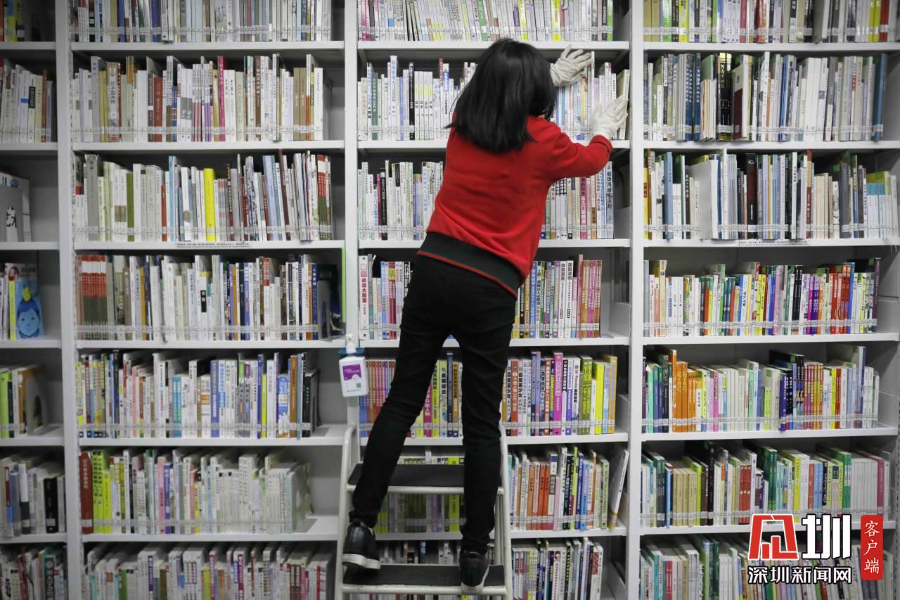 一位工作人員正在整理書架。