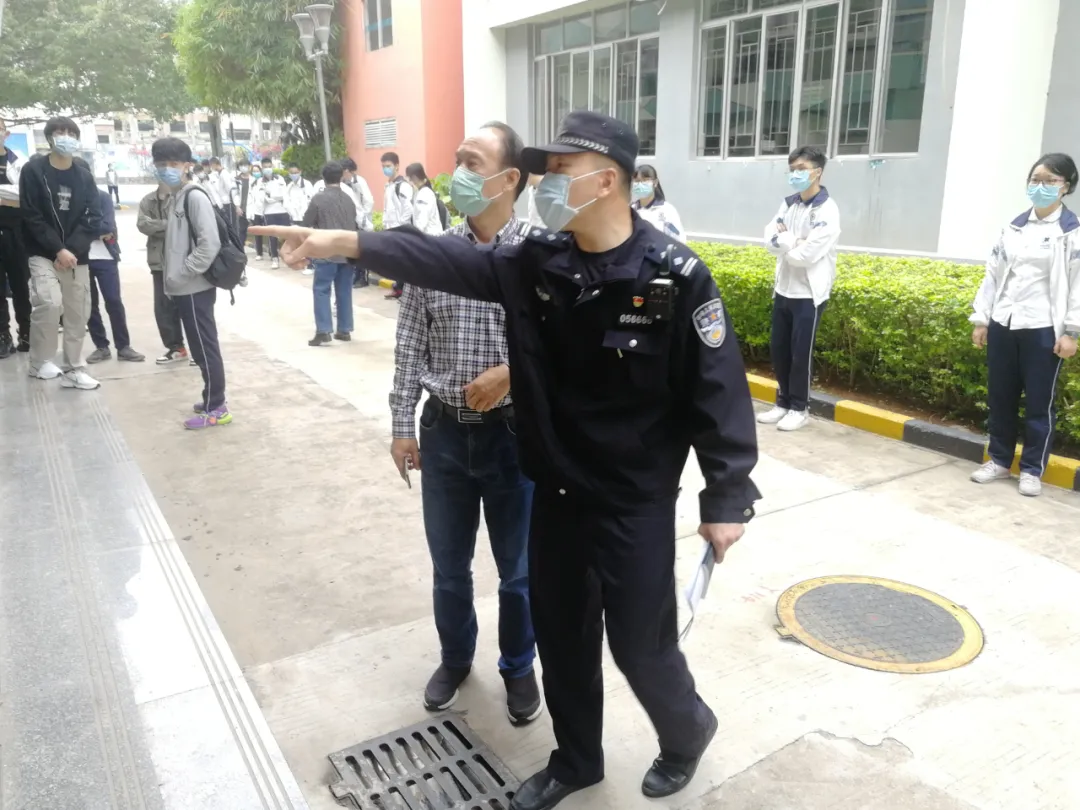 “學(xué)校大門是校園疫情防控的第一道防線,把好校園第一道關(guān)卡至關(guān)重要,采取全封閉管理,對(duì)外來人員嚴(yán)格詢問登記,逢車必檢、逢人必查,在上學(xué)放學(xué)高峰時(shí)段確保校門口安保力量,將風(fēng)險(xiǎn)隱患攔截在校門外?!?月21日,在福田區(qū)云頂學(xué)校排查安全隱患時(shí),福強(qiáng)派出所社區(qū)民警程印對(duì)該校安全負(fù)責(zé)人特別強(qiáng)調(diào)。據(jù)了解,截至4月25日,福田公安分局對(duì)轄區(qū)44所中學(xué)開展了檢查,發(fā)現(xiàn)并整改問題隱患17處。