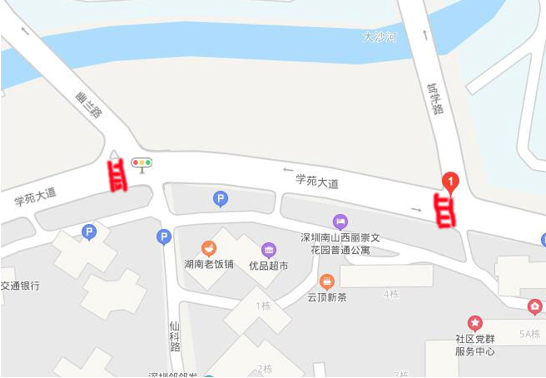 紅色畫筆標(biāo)示的地方,即為學(xué)苑大道上設(shè)計不合理的斑馬線。