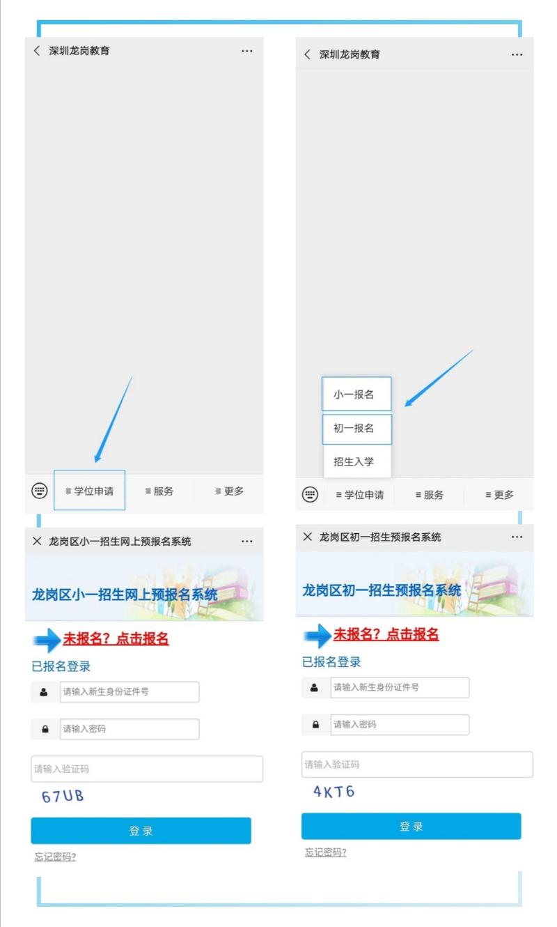 和以往一樣,家長可以登錄龍崗政府在線網(wǎng)站的“龍崗區(qū)教育局基礎教育科”頁面(http://www.lg.gov.cn/bmzz/zs/)進行學位申請報名,不過今年,家長多了一個更加便捷的報名方式,通過關注“深圳龍崗教育” 微信公眾號,在“學位申請”欄目中點擊“小初一報名”,憑適齡兒童、少年身份證號進入,填寫學位申請信息,填報學校志愿。確認信息無誤后直接保存,同時產(chǎn)生申請學位的流水號,即完成網(wǎng)上預報名。