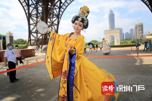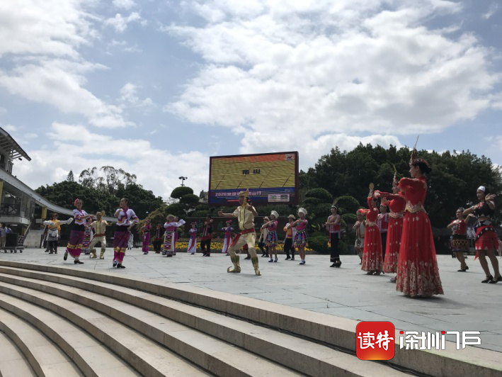 “五十六個民族親親一家,就像百花園里盛開的花……”5月1日上午10點半,錦繡中華民俗村入口的廣場響起了《母親是中華》的歌聲,身著民族服飾的工作人員們載歌載舞迎接游客的到來,表演吸引了游客們駐足觀看、拍照。民俗村工作人員告訴記者,疫情期間暫停的開園迎賓表演在假期首日恢復(fù),“五一”期間景區(qū)還推出了“民俗游園會活動”。