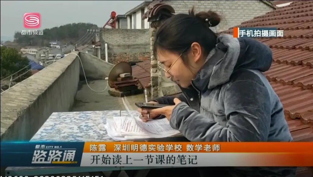 深圳中小學(xué)網(wǎng)課開課以來,廣大青年教師克服種種不利條件,變身教育主播,讓知識(shí)穿越屏幕直達(dá)學(xué)生心靈,深圳明德實(shí)驗(yàn)學(xué)校的陳露老師就是其中一位典型代表。她因疫情滯留于湖北農(nóng)村,由于信號(hào)差,一開始為了錄制微課,白天她就帶好口罩跑到雜草叢生的山頂找信號(hào),一塊木頭當(dāng)?shù)首樱侣壬蟼饕曨l,頂著寒風(fēng)一坐就是半天。線上教學(xué)正式開課后,由于設(shè)備和信號(hào)問題,陳老師只能采用QQ直播的方式給學(xué)生上課,為了保障語音效果,她把課堂搬到信號(hào)稍強(qiáng)的屋頂。上屋頂不是件容易的事,陳老師必須先爬一個(gè)陡峭的梯子,再匍匐穿過一個(gè)孔洞才能到達(dá)。一個(gè)天臺(tái)、一張折疊桌成了她的“三尺講臺(tái)”,一疊信紙成了她的“黑板”,一部手機(jī)成了她的“多媒體”。陳露老師每天坐在樓頂?shù)暮焙惋L(fēng)雪中,堅(jiān)持完成直播課,保證學(xué)生正常的線上學(xué)習(xí)。