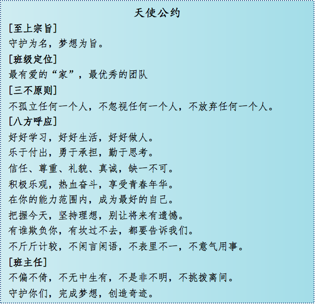 詹老師所帶班級嚴格遵守著“公約精神”,創(chuàng)造了一個個驚喜:2015級14班在藝術(shù)季班級文化設(shè)計中是全校唯一全員參與的班級;2016級8班在跳繩比賽中從練習時的倒數(shù)第一到復賽逆襲闖進決賽獲得一等獎;2017級9班在疫情網(wǎng)課期間堅持每科作業(yè)“今日事今日畢”,無一人掉隊。