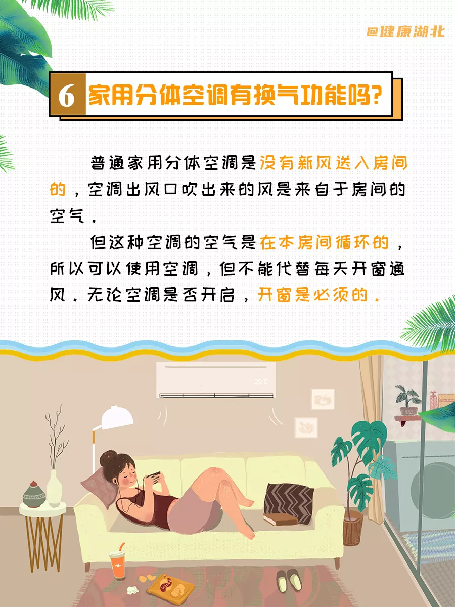 ③開(kāi)空調(diào)時(shí)暫時(shí)不要關(guān)閉門窗,讓空氣流動(dòng)一段時(shí)間以后,再關(guān)閉門窗。使用中央空調(diào)的時(shí)候應(yīng)該提高新風(fēng)率,并保持一定的空氣流通和自然通風(fēng)。