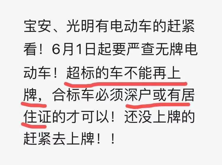 見圳客戶端·深圳新聞網(wǎng)2020年6月2日訊(見圳客戶端、深圳新聞網(wǎng)記者 鄭曉鵬)近日,網(wǎng)上流傳著這樣一張圖片,圖片上稱,6月1日起寶安、光明電動(dòng)二輪車備案通道要關(guān)閉了。消息一出,便引起網(wǎng)友的廣泛關(guān)注“真的假的?”“那我的電動(dòng)車還能上牌嗎?”“超標(biāo)車是什么車?合標(biāo)車又是什么車?”……記者從深圳市交警局獲悉,6月15日起,寶安區(qū)和光明區(qū)超標(biāo)的電動(dòng)二輪車將不再予以發(fā)放黃色過渡期標(biāo)識;對于符合新國標(biāo)標(biāo)準(zhǔn)的車輛,市民持深圳戶籍身份證或居住證即可辦理電動(dòng)二輪車備案,發(fā)放可長期使用的白色標(biāo)識。已備案的并發(fā)放黃牌標(biāo)識的車輛仍可繼續(xù)使用,過渡期至2021年12月31日。