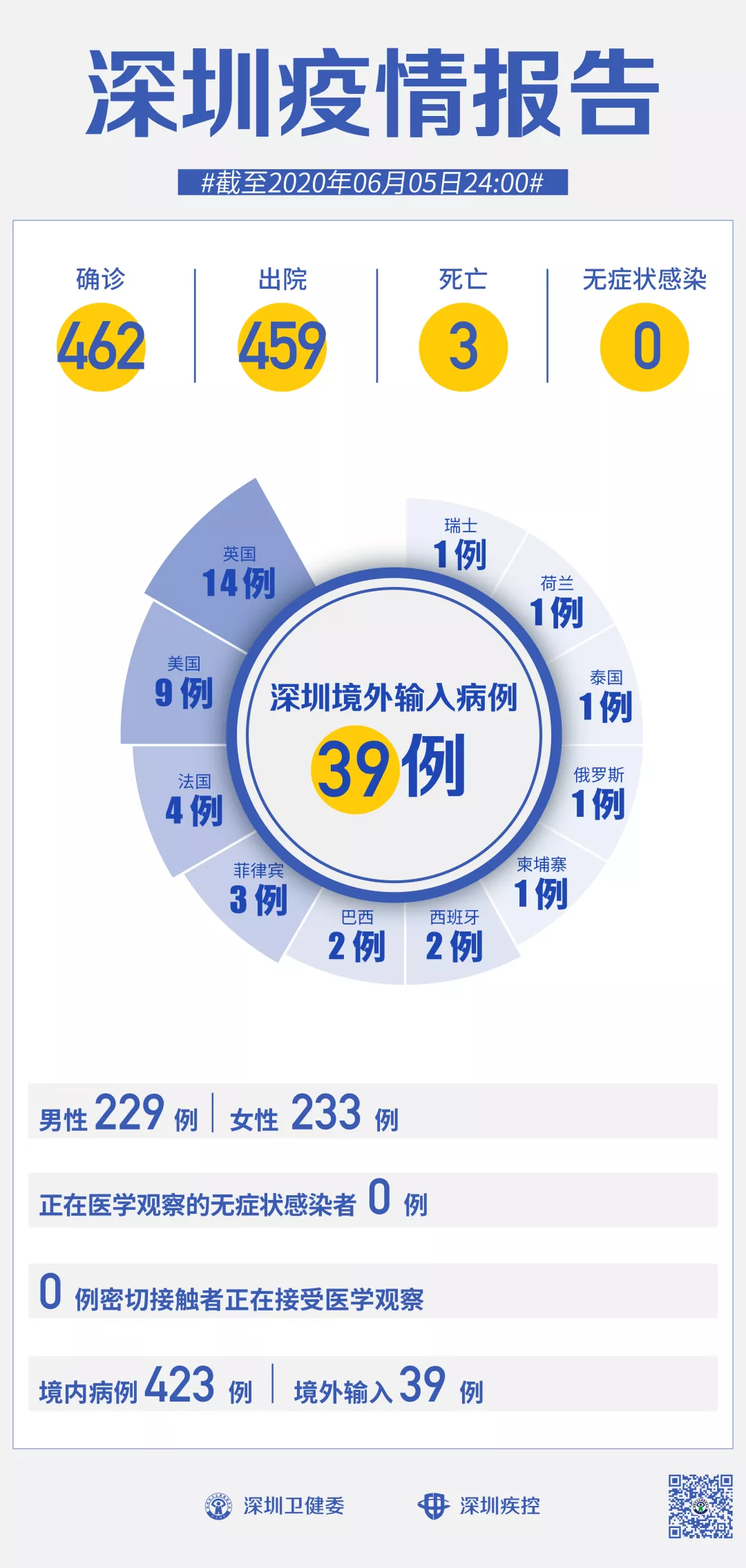 截至6月5日24時(shí),深圳累計(jì)報(bào)告新冠肺炎病例462例。