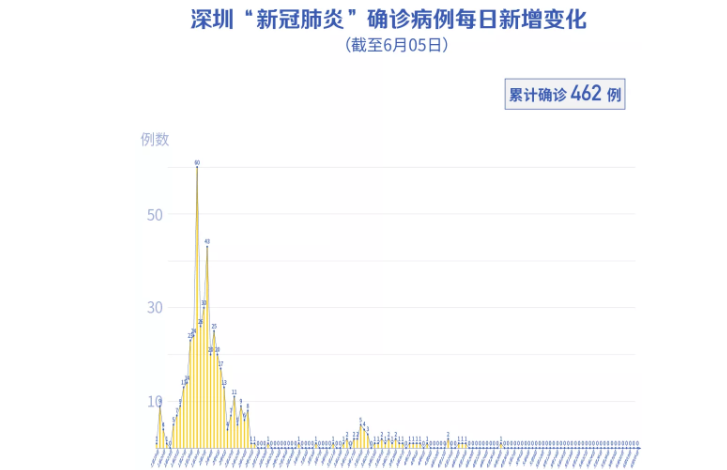 截至6月6日24時,深圳累計報告新冠肺炎病例462例。