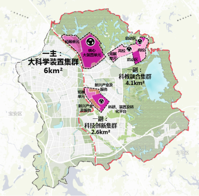 “一副”即科教融合集群。規(guī)劃面積4.1平方公里,是科學城的科教融合區(qū),布局大科學裝置和高水平大學,作為大科學裝置近期集中啟動區(qū),為近期科學城建設提供空間保障。