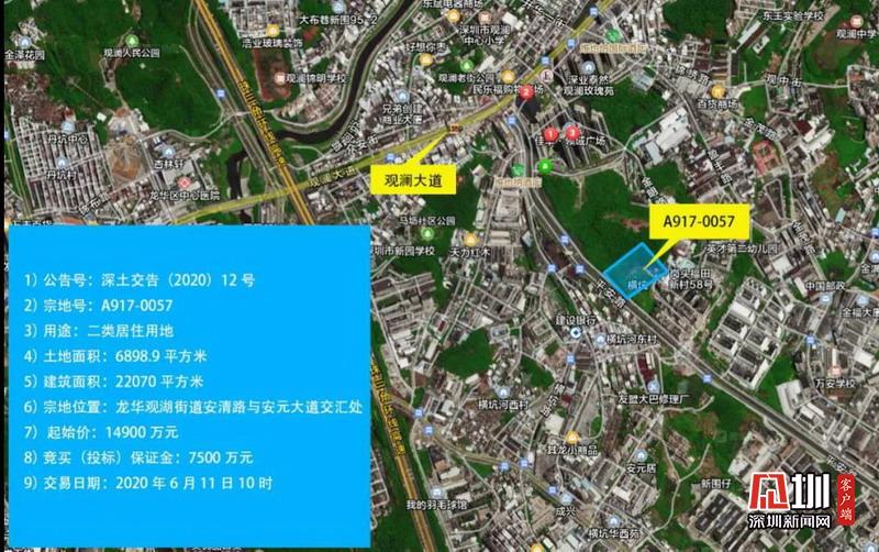 龍華A917-0057宗地位于龍華區(qū)觀湖街道安清路與安元大道交匯處,土地用途為二類居住用地,起始價(jià)為1.49億元,土地面積為6898.9平方米,建筑面積為2.21萬平方米。該宗地建設(shè)住宅類型為出售的人才住房,項(xiàng)目建成后出售的人才住房銷售基準(zhǔn)售價(jià)不高于2.97萬元/平方米,最高售價(jià)不高于3.12萬元/平方米。