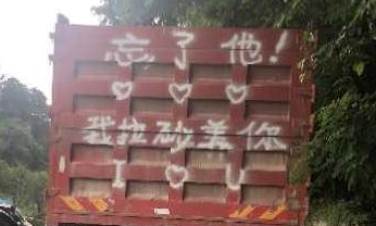 近日,貴陽一30歲貨車司機為了表達妻子和自己一起拉砂相濡以沫的感情,趁著十五天的臨牌期,效仿網(wǎng)絡(luò)短視頻,用白色自噴漆在車身上噴涂了“忘了他,我拉砂養(yǎng)你”的標(biāo)語。