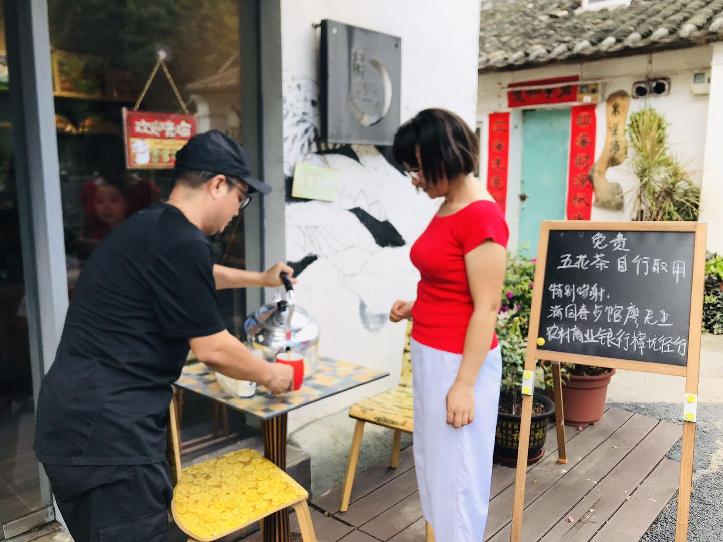 “夏古草、金銀花、菊花……”小林哥精心配制的“愛心涼茶”受到許多村民、駐村藝術(shù)家以及很多外來游客的歡迎。而為市民提供免費“愛心涼茶”的事跡,感動許多人的同時,更影響了周圍一批熱心的企業(yè),他們紛紛加入涼茶的善意隊伍中參與愛心接力,為上圍“愛心涼茶”添磚加瓦,形成了“善的循環(huán)”。