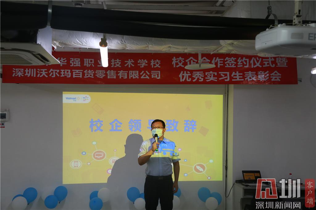 見圳客戶端·深圳新聞網(wǎng)2020年6月24日訊(記者 曹園芳 通訊員 沈琳 喬沐)昨天下午,深圳市華強(qiáng)職業(yè)技術(shù)學(xué)校與深圳沃爾瑪百貨零售公司簽訂校企合作協(xié)議。趙盟校長(zhǎng)、朱俊康副校長(zhǎng)、西校區(qū)王中華主任、校企合作辦黃琳主任、商貿(mào)部喬沐部長(zhǎng)、財(cái)經(jīng)部馬慧連副部長(zhǎng)、辦公室沈琳老師及學(xué)校優(yōu)秀實(shí)習(xí)生代表出席了簽約儀式暨優(yōu)秀實(shí)習(xí)生表彰會(huì)。