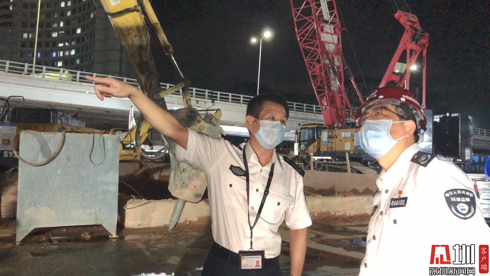 深圳市生態(tài)環(huán)境綜合執(zhí)法支隊支隊長許化一行聯(lián)合深圳市生態(tài)環(huán)境局福田管理局突擊檢查了黃木崗綜合交通樞紐一工區(qū)和華強云產業(yè)園兩處施工工地,均未發(fā)現(xiàn)違規(guī)超時施工行為。
