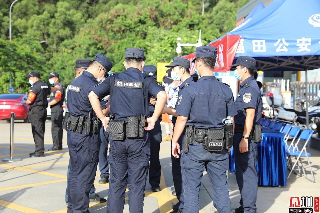 考點(diǎn)外,深圳公安正在討論工作部署,確??荚図樌M(jìn)行。
